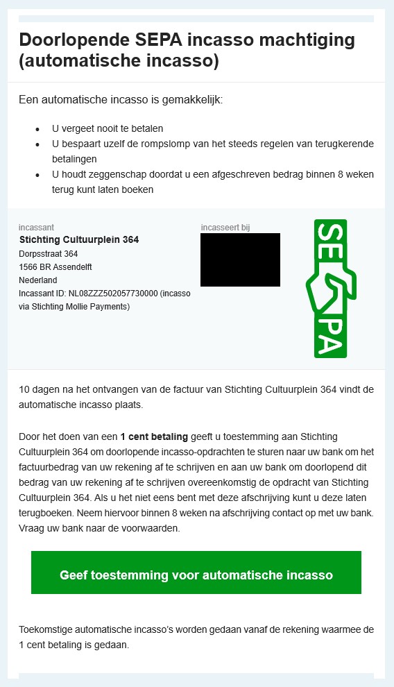 "Graag uw toestemming voor automatische incasso"