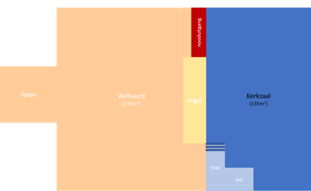 Deze zalen zijn samen te voegen door de vouwwand open te schuiven, dit resulteert in een oppervlakte van 65m²